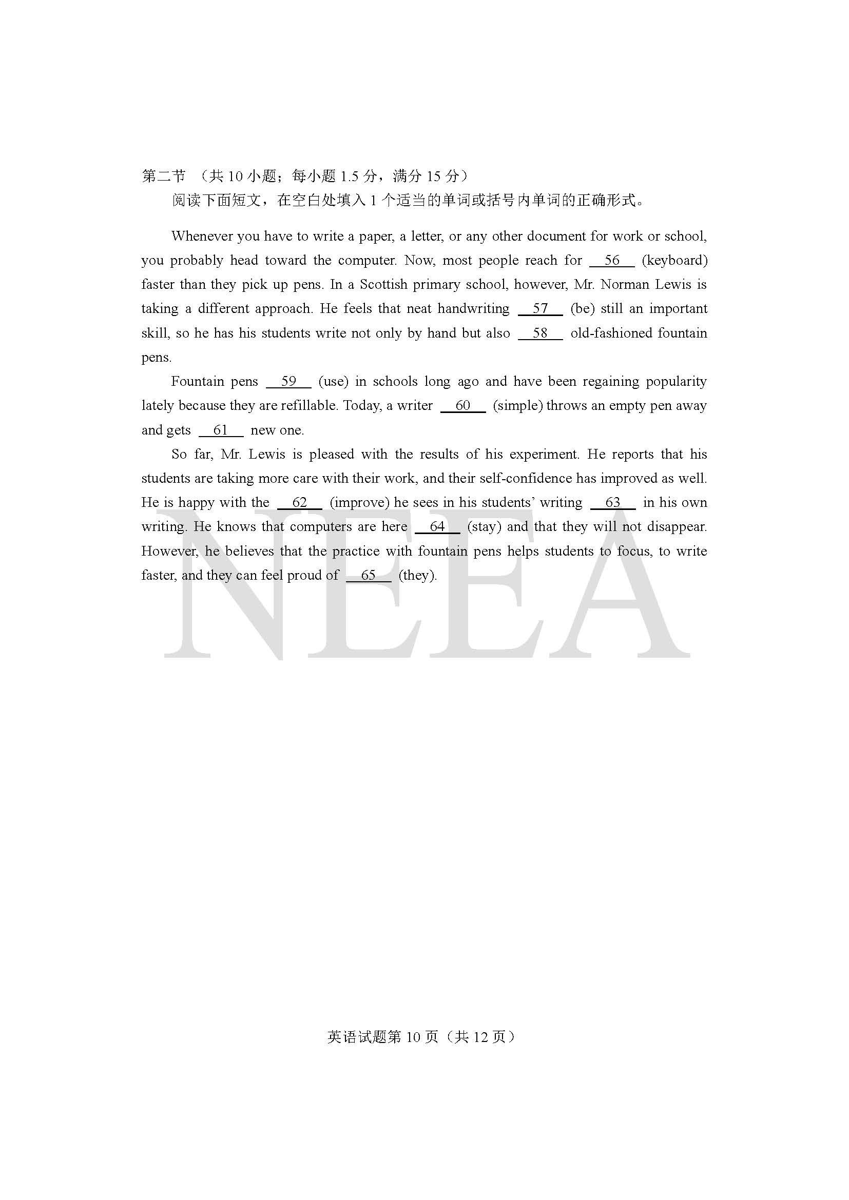 第三,传统题型所占分值减少,或不再使用传统题型。比如,英语试卷的完形填空题由30分降至15分;日语、俄语、德语试卷不再使用单项填空题;西班牙语试卷的单句翻译题改为应用文写作题。